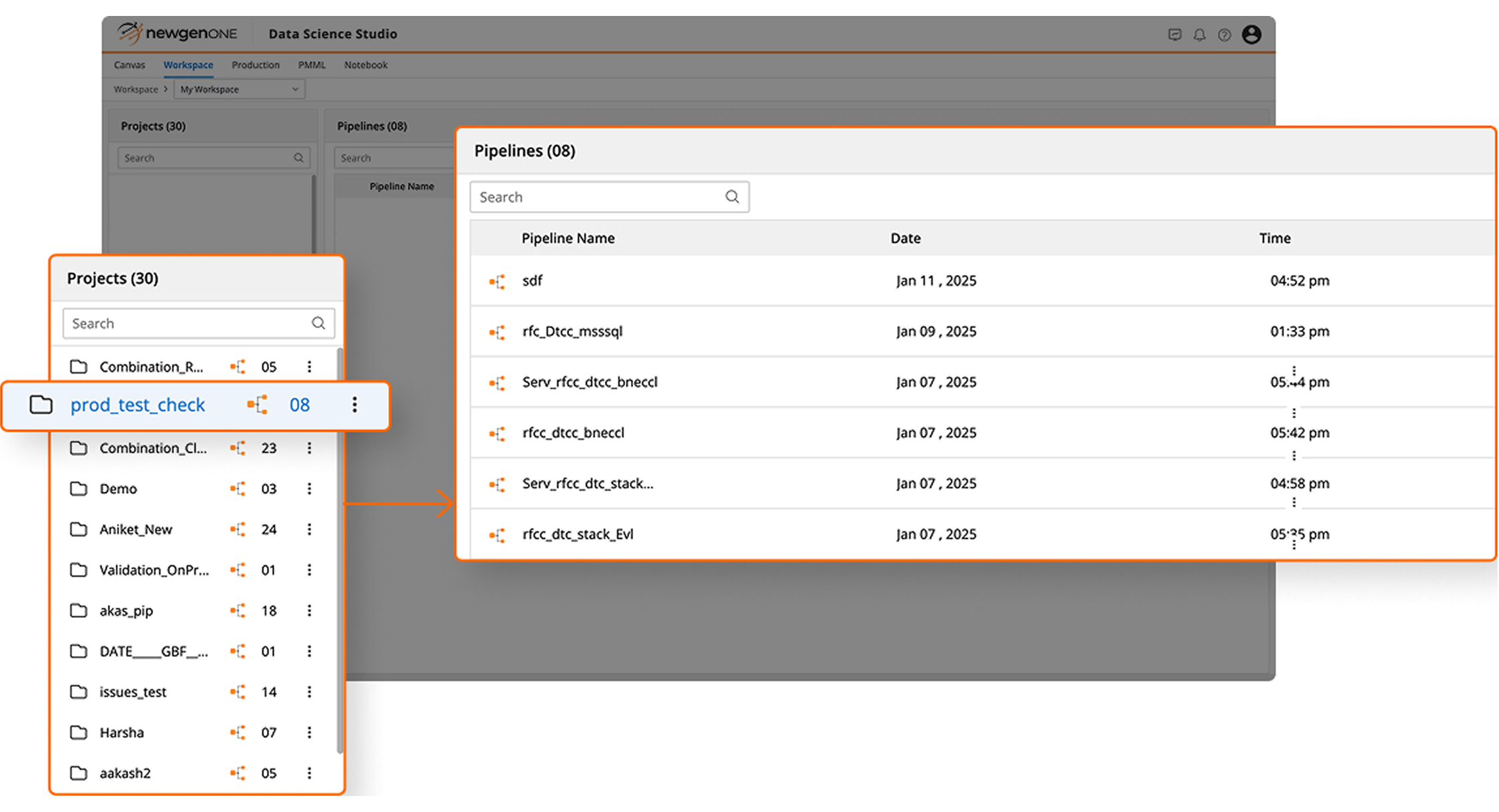 Manage projects in a personalized way using ‘My Projects’. Create multiple data science experiment pipelines on a single project
