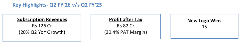 We witnessed traction in new geographies and large deals breakthrough in mature markets, which is expected to help us in further scaling up in these geographies. Our Subscription revenues also witnessed strong growth of 20% YoY.”